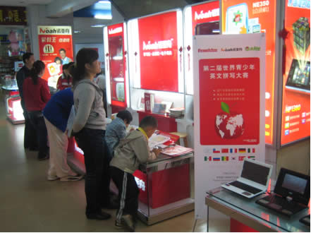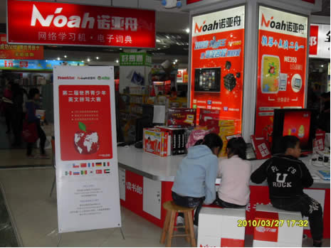 与此同时,由于诺亚舟点读机是09年首届世界青少年英语拼写大赛的指定用机,所以第二届拼写大赛的到来也使诺亚舟的产品销售不断升温,诺亚舟点读机NE260NE360甚至还出现了脱销现象,诺亚舟2010年春季才上市的海淀视频学习机和学习电脑也是大受欢迎,诺亚舟植根青少年教育的品牌形象也更加深入人心