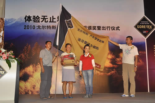 经过评委们公正、严格、细致的评选,专业登山组的《蜀山探险-达多漫因峰攀登》的彭晓龙团队、野外穿越/户外徒步组的《鸭绿江径流全程徒步穿越》的诗语团队、户外旅行/探险旅游组的《追寻雪域乡邮路》的史文生团队和非凡户外组的《戈尔特斯重返玉树行动》的于峰团队获得了“2010戈尔特斯TM户外梦想实现”四个最终年度冠军团队。除了上述四大组别的获奖团队之外,同时活跃在各大户外网站的驴友代表们、户外运动狂热爱好者以及户外媒体和户外网站联盟优秀代表们也获得了嘉奖,热心参与投票的幸运网友还获得了由各大品牌商提供的幸运礼品。在颁奖过程中,场内气氛被一次又一次推向高潮,当获得野外穿越/户外徒步组的《鸭绿江径流全程徒步穿越》的诗语团队在发表获奖感言的时候,从沈阳远道而来的全体队员为在场观众献唱了一曲雄壮有力的《彪队之歌》,全场观众也齐声合唱。而当获奖驴友胡长海和儿子一同上台领奖的时候全场暴发出了最热烈的掌声,无疑,这位父亲和他不满12岁的儿子让所有中国的户外爱好者看到了中国户外运动未来的传承发展和希望。