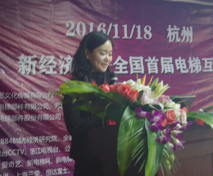 新电梯网媒主编、电梯安全与公益联盟发起人、会议主办方代表邓丽丽女士为大家讲解了电梯互联网+的大势以及大市,她认为国家已经把互联网提高到国家战略层面,2015年网络覆盖100%的乡镇,到2020年互联网基础设施建设到最后一公里,互联网的大势已经来临。我国人口老龄化、旧楼加装、以及安全和维保的巨大市场需求,需要具有前瞻意识的企业家尽快与互联网+融合。互联网+会带给我们巨大的发展前景。