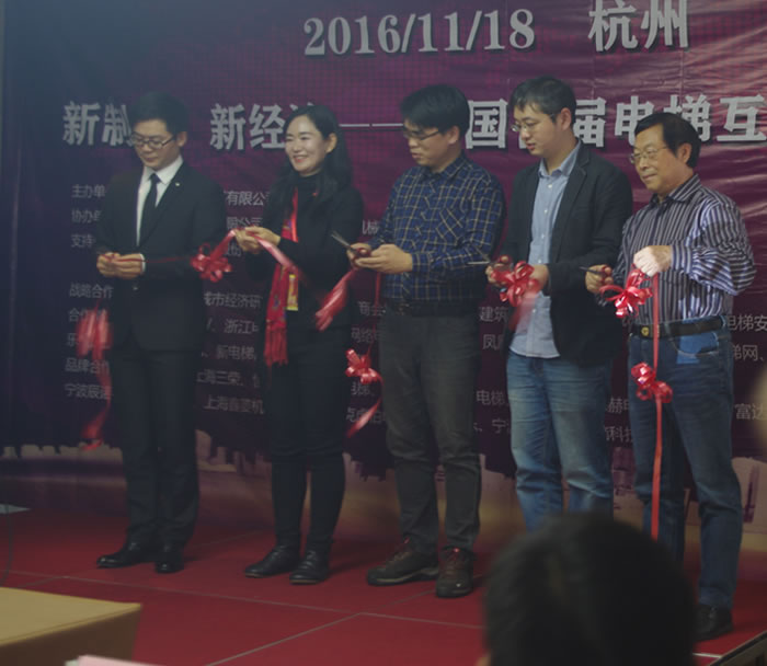新电梯交易网www.xindianti.cn上线剪彩仪式,浙江大学计算机专业博士浙江师范大学计算机系范然讲师,公共采购行业资深专家、公共采购网络电视台总编辑、中国公共资源交易跨区域合作联盟秘书长胡志敏总编辑,廊坊市睿思文化传媒有限公司董事长、电梯安全与公益联盟发起人、新电梯网媒主编、邓丽丽女士,著名策划人、中央电视台栏目制片人、中央新影微电影台双创频道、央视微电影双创频道节目总监杜天桥先生,新电梯中国网智库资深专家、前蒂森电梯高级工程师张世匀先生,新电梯中国网智库资深专家、宁波力隆企业集团高级顾问彭年俊先生为电梯业全新网上交易平台新电梯交易网www.xindianti.cn上线剪彩。