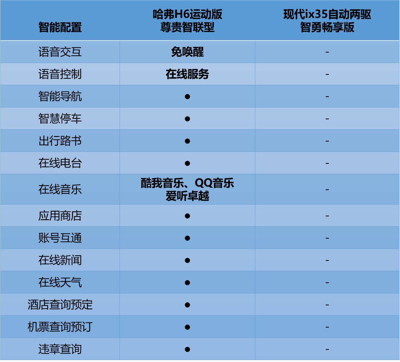 在线娱乐服务方面,哈H6运动版支持酷我音乐、在线电台、在线天气的基础上,还支持QQ音乐以及爱听卓越提供的超过600万首高清音乐。车主只需说出我想听新裤子乐队的歌曲、导航到颐和园,爱车即刻就能做出回应,免去手动操作或者语音唤醒,而诸如查看天气、资讯股票、阅读新闻等复杂指令车主只需说出“你好哈弗”便可唤醒服务,在方便智能化控制车辆同时,有效防止驾驶过程中注意力的分散,提升行车安全。同时,新车还支持酒店预订、火车机票购买、违章查询、在线新闻浏览等功能。