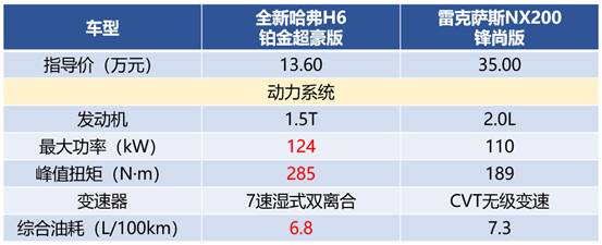 在一部分人的固有观念中,自主品牌在动力方面要落后于德系、日系,但实际结果却未必如此。通过动力对比不难发现,全新哈H6铂金版无论动力、油耗,都完爆雷克萨斯NX200