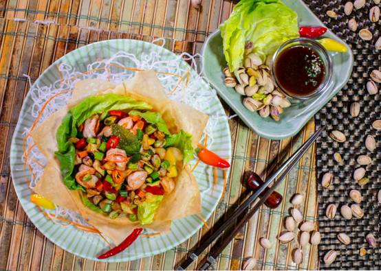 美国开心果既是一个健康的休闲小食, 也是不可多得的烹饪原料。 活动中,名厨甄文达(Martin Yan)通过在线上为嘉宾“云”烹饪了两道美国开心果中式美食,开心海鲜生菜杯以及开心果巧克力脆球。 既体现了中国美食文化的精髓,又把美国开心果与中式菜肴完美结合,食材搭配、营养、口感及色泽都相得益彰,令人回味再三,唇齿留香。而在线媒体也积极响应,跟着甄大一起学做美食,开心洋溢,幸福满满。