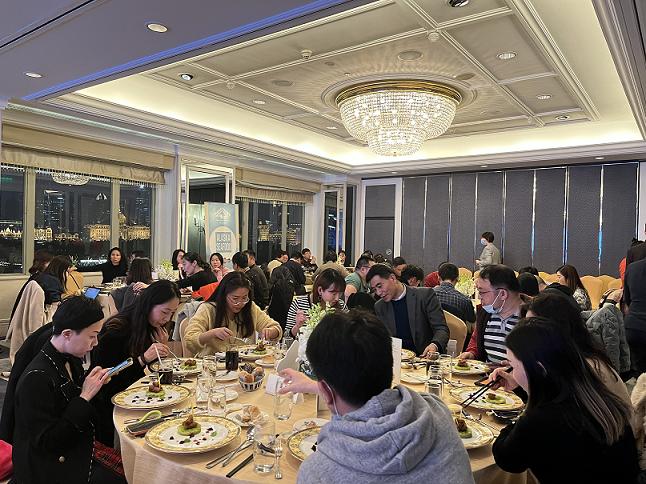 20211216日,美国阿拉斯加海产在上海浦东香格里拉酒店举办了一场贸易商交流会暨海鲜品鉴晚宴。当晚,美国驻上海总领事馆农业贸易处农业领事Erik Hansen美国阿拉斯加海产中国市场代表、六十余位贸易商以及媒体莅临现场。酒店厨师运用美国阿拉斯加黑鳕、狭鳕、鲽鱼、海参、红鱼和六线鱼现场烹饪了多道菜品,色香味美,备受好评。
